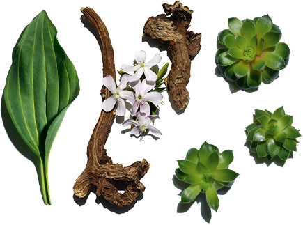 6 biologische Pflanzenextrakte kommen von Pflanzen, die auf der Domaine Clarins angebaut werden